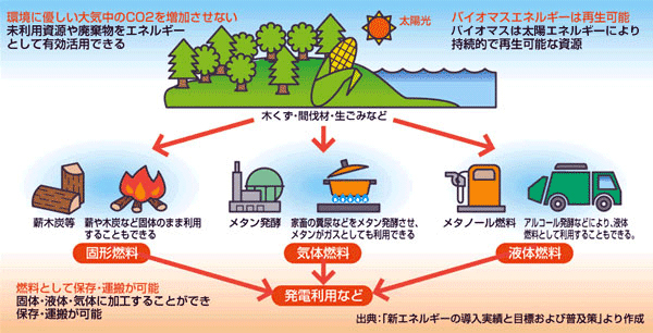バイオマス発電は、木屑や燃えるゴミなどを燃焼する際の熱を利用して電気を起こす発電方式です。発電した後の排熱は、周辺地域の暖房や温水として有効活用ができます。